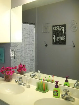 I always despised sharing a bathroom with my brother growing up. I wanted my own. My mom's reply was always, "I don't have my own bathroom. I have to share one with your father." Ugh - hardly the same.